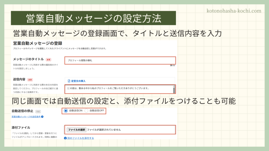 ここが営業自動メッセージの核であり、ほかのランサーとの差別化ポイントになります。