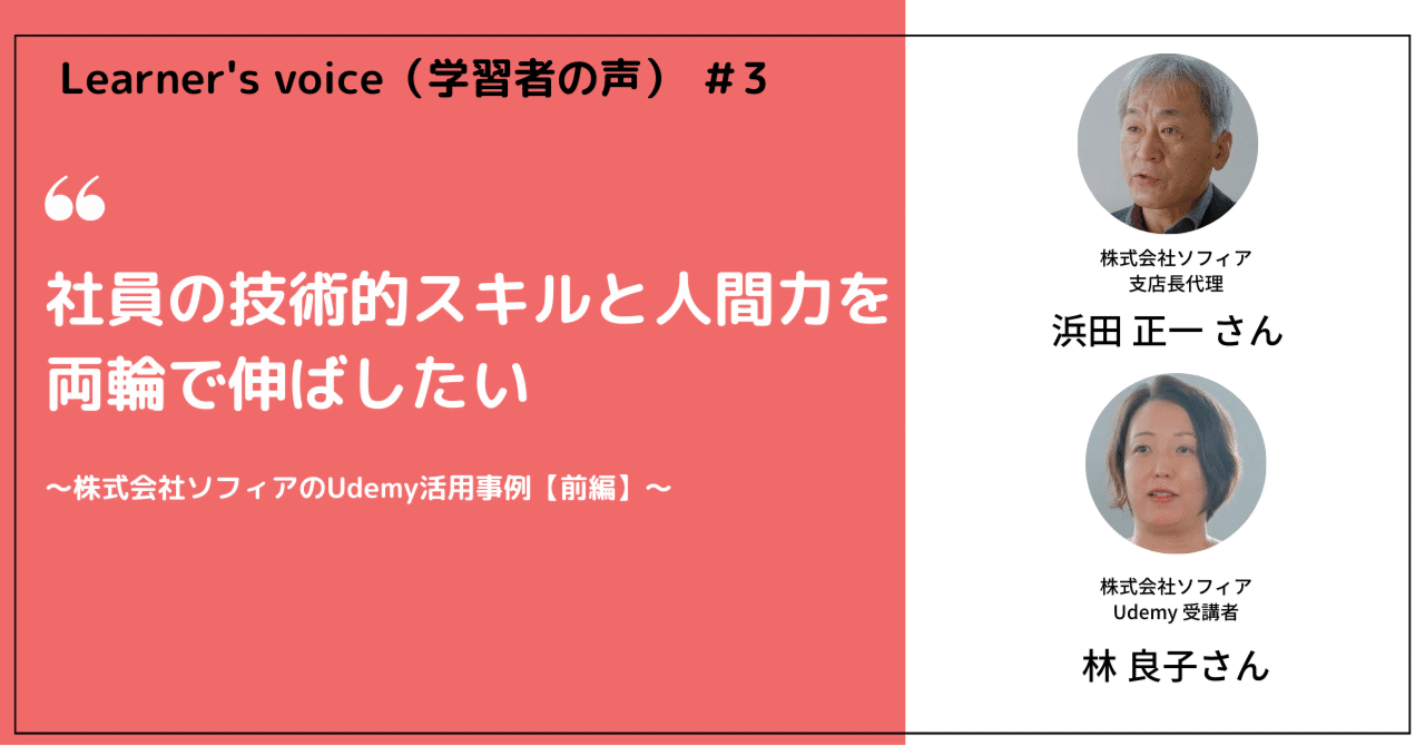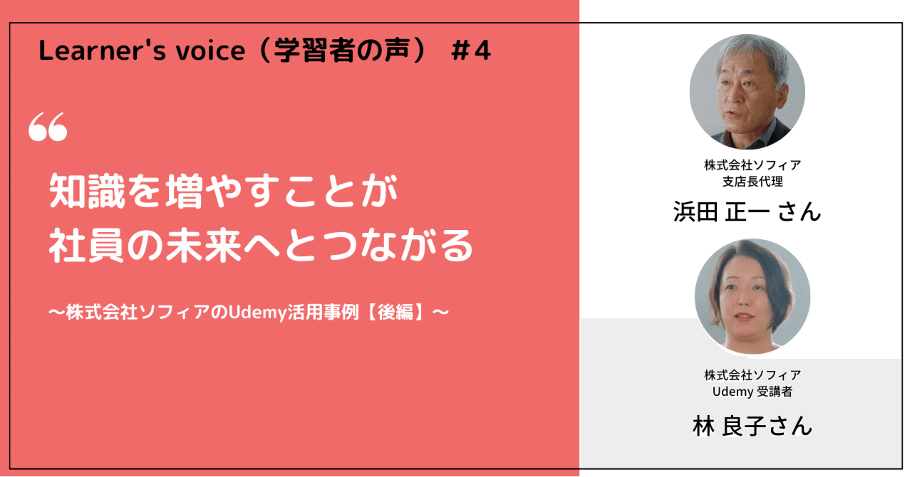 「Udemy」を使って実際の仕事にどのような良い影響があったのか、社員の学ぶ姿勢にどんな変化が現れたかなど、企業の代表者と現場の社員に聞く内容です。
